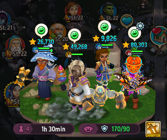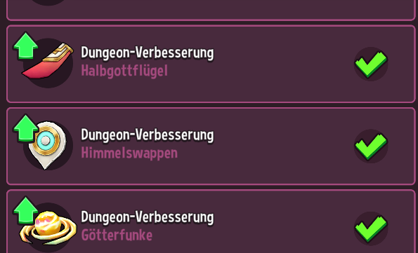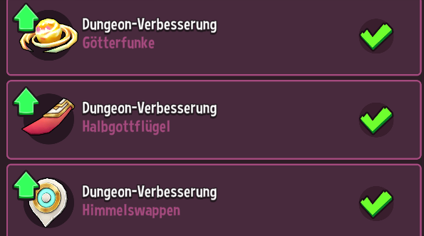 Achte auch auf die Emojis über deinen Helden als visuelle Indikatoren. Sie helfen dir, schnell einzuschätzen, ob deine Helden bereit sind, sich den Herausforderungen eines Dungeons zu stellen. Achte auf den Status: grüne Emojis signalisieren eine gute Vorbereitung, während rote oder lilane Emojis darauf hinweisen, dass möglicherweise Anpassungen nötig sind, bevor du deine Helden in den Kampf schickst.