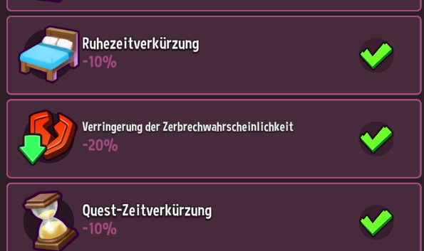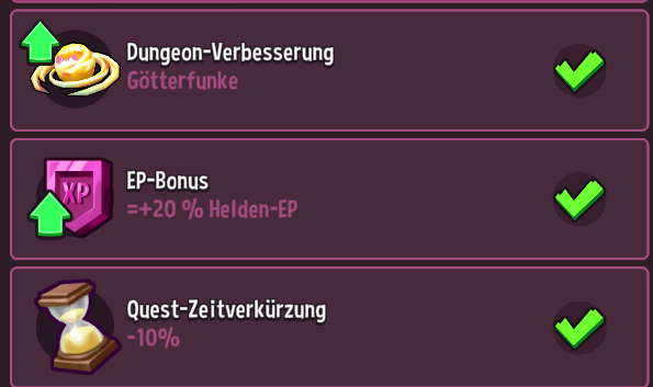 Achte auf die Emojis über deinen Helden. Diese geben dir eine visuelle Einschätzung, ob deine Helden in der Lage sind, den Dungeon zu meistern. Ein grüner Emoji-Status deutet darauf hin, dass deine Helden gut vorbereitet sind, während rote/lilane Emojis darauf hinweisen können, dass Anpassungen notwendig sind, bevor du deine Helden losschickst.